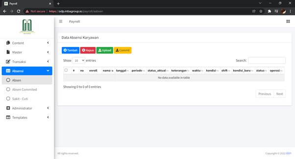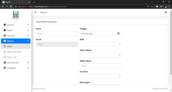 Untuk menambahkan Absen Karyawan, klik tombol ‘Tambah’