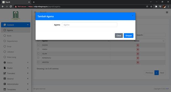 Untuk menambahkan Agama, klik tombol ‘Tambah Agama’