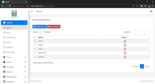 Menu Content Payroll digunakan oleh manajemen dalam penentuan konten payroll. Konten yang perlu ditentukan adalah sebagai berikut: