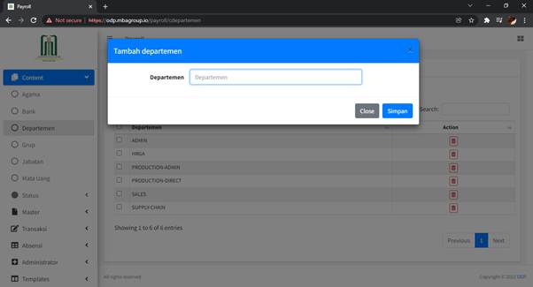 Untuk menambahkan Departemen, klik tombol ‘Tambah Departemen’