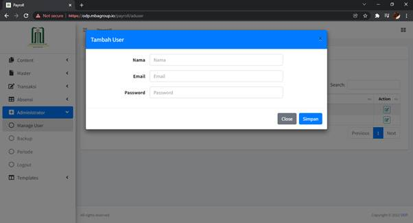 Untuk menambahkan Pengguna, klik tombol ‘Tambah User’