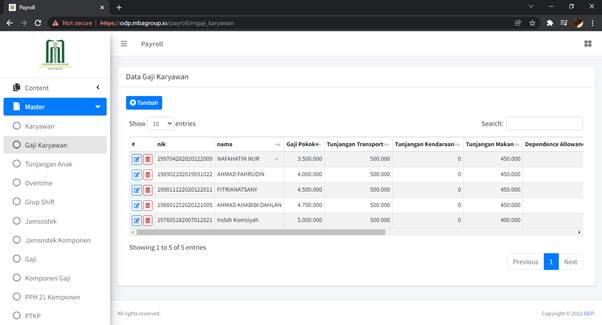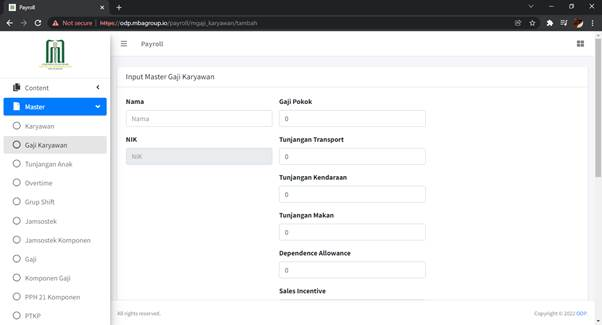 Untuk menambahkan Master Data Gaji Karyawan, klik tombol ‘Tambah’
