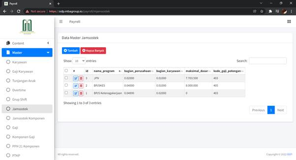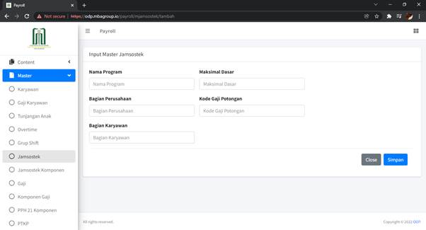 Untuk menambahkan Master Jamsostek, klik tombol ‘Tambah’