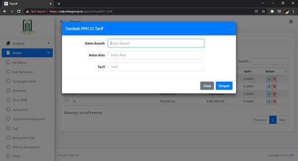 Untuk menambahkan Master PPH 21 Tarif, klik tombol ‘Tambah’