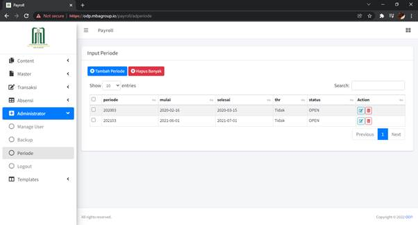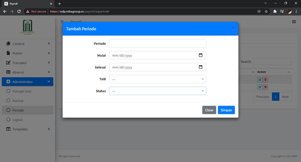 Sub Menu Periode digunakan untuk menentukan periode payroll yang aktif.