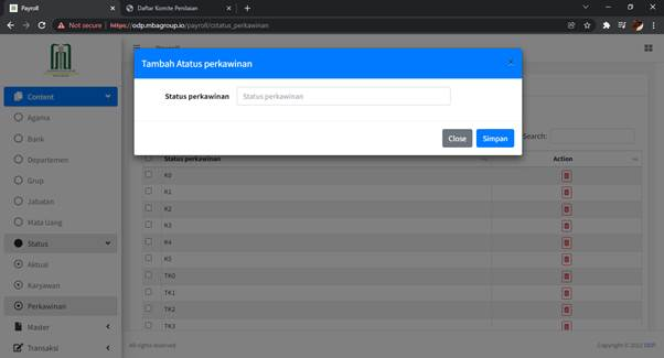 Untuk menambahkan Status Perkawinan, klik tombol ‘Tambah Status Perkawinan’